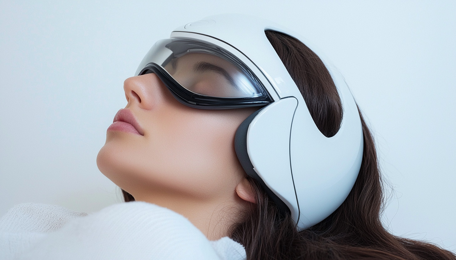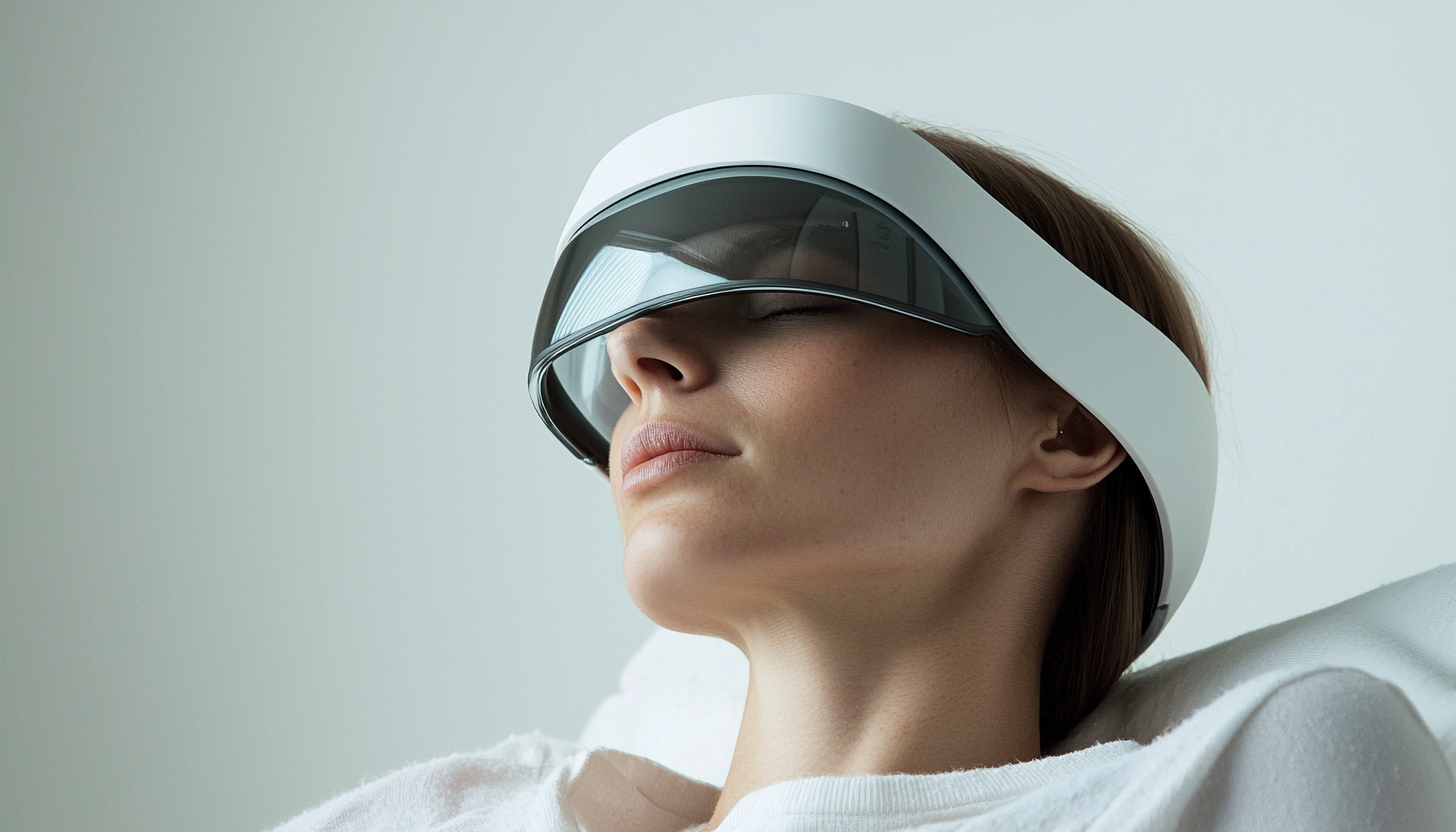 Light Therapy: A smart glass worn on the head emits gentle, scientifically calibrated light to regulate your circadian rhythm and prepare your body for rest.